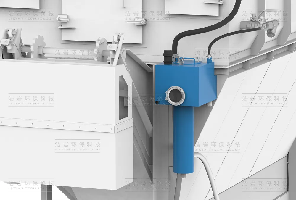 D型湿式除尘器可将水槽斗的沉淀的泥渣从水槽斗底部出口排出。泥渣通过管道系统输送至最终的处理点。可连续冲渣,也可间断冲渣。此类型除 渣方式适用于化工或采石业物料输送,粉碎除尘,筛选、采矿或采石转运点等。