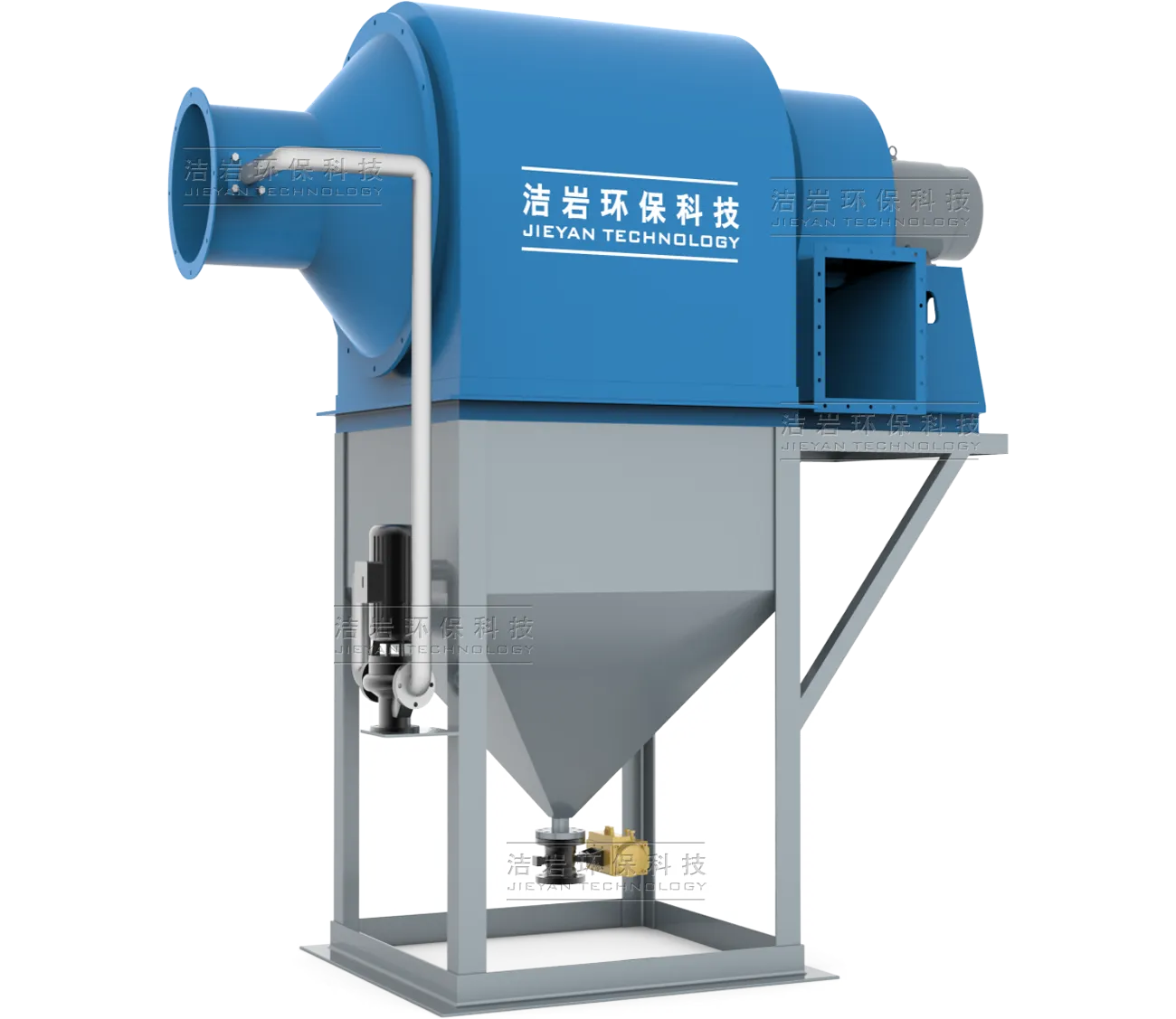 脱水除雾装置采用独特双层旋流结构,有效隔离被捕集的水雾与空气流,防止液滴被上升气流二次夹带。这一设计显著提升了脱水除雾效率,确保出口空气洁净干燥。