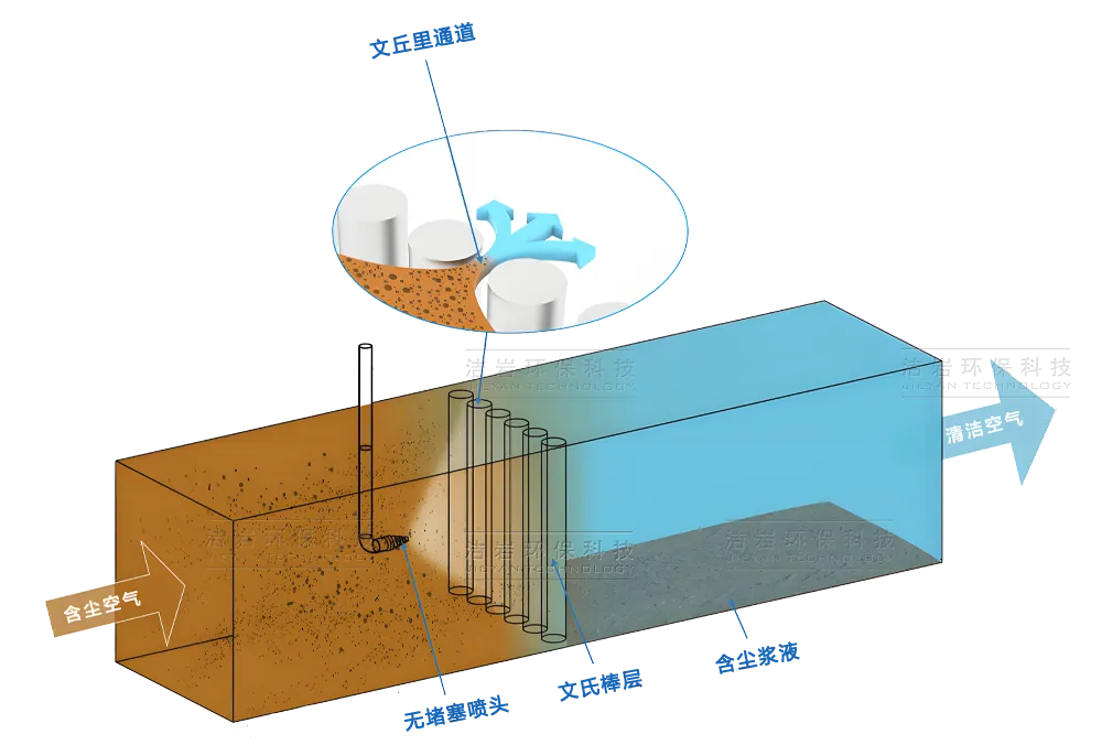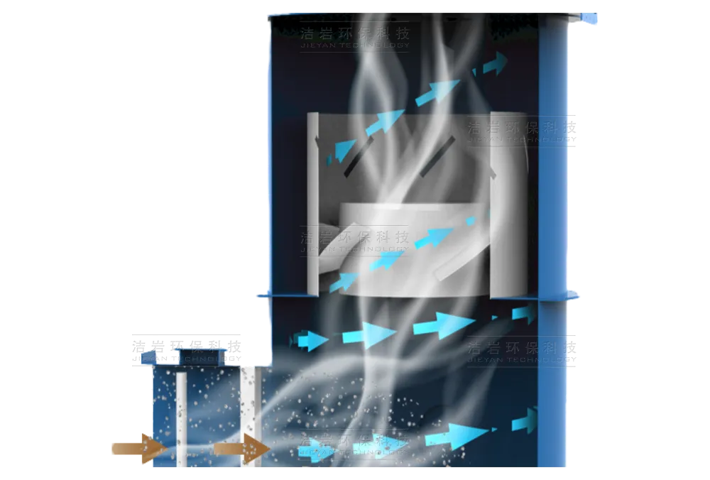 2.特有的气流过程产生一股强烈的水流旋风,让携带有害物体的气体穿越其间;