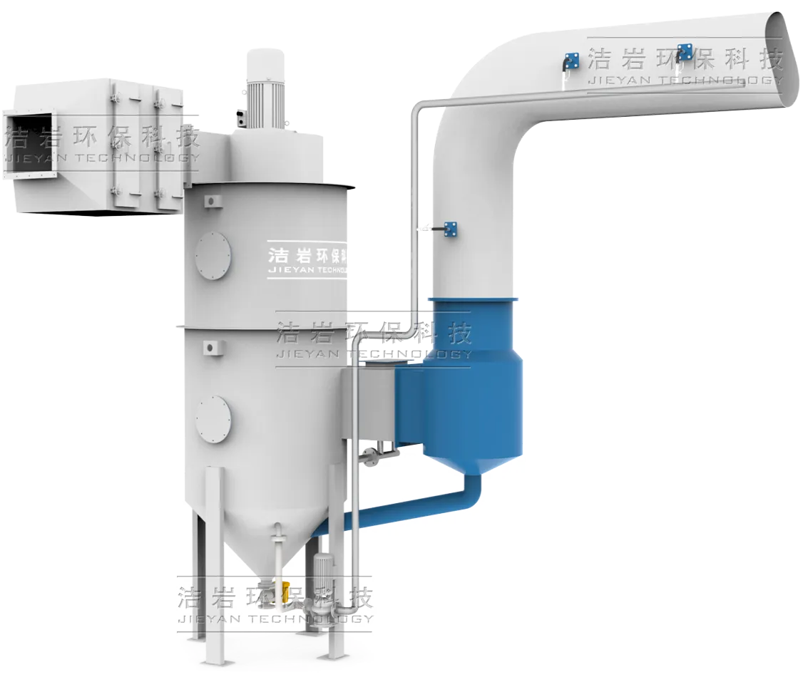 ◈ 在文丘里管喉部,含尘废气和水滴强烈相互作用,污染物颗粒和水滴充分混合,洗涤过的废气和 含尘液滴切向进入下游的离心分离结构实现分离